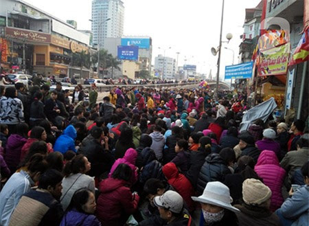 Ghi nhận của chúng tôi tại chùa Phúc Khánh (Ngã Tư Sở - Hà Nội) lúc 17 giờ chiều cho thấy, dù còn hơn 2 giờ nữa mới đến lễ chính nhưng hàng nghìn người dân đã kéo đến.