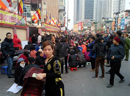 Ngay sau khi kéo đến để làm lễ, hàng nghìn người đã nhanh chóng lựa chọn, thậm chí "xí chỗ" cho mình trước cổng chùa, lòng lề đường. Lực lượng dân phòng, công an phường sở tại cũng như lực lượng CSGT nhanh chóng có mặt để điều tiết giao thông, đảm bảo an ninh cho lễ cầu an.